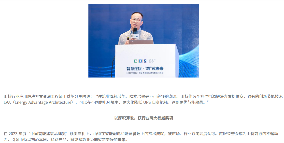 智能建筑峰会 | 满载胜誉!山特揽收 2023 中国智能建筑品牌两大奖项 所属分类:公司新闻 发布时间:2024-06-08 17:33:56 上一条:600+ 门店应用!山特 UPS 助车企巨头驶向智慧未来 下一条:定制轨交版 UPS × 浙江地铁骨干线,山特让低碳出行更高效便捷